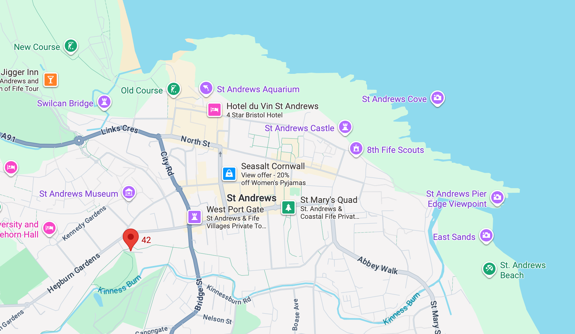 St Andrews blends history, coastline and world-class leisure. Play the iconic Old Course, explore medieval sites like the Cathedral and Castle, or enjoy the shops and cafés in town. West Sands Beach and the Fife Coastal Path offer beautiful walks and sea views, while nearby villages such as Elie, Anstruther and Crail provide charming harbours and great seafood.